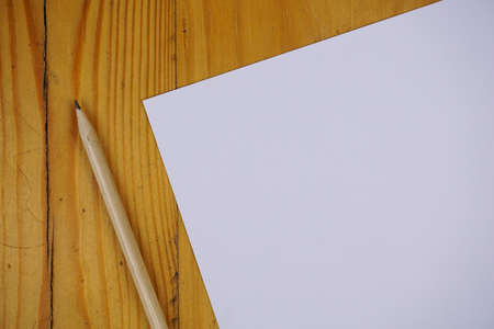 blank paper sheets and pencil on wooden table. vintage copy space background concept