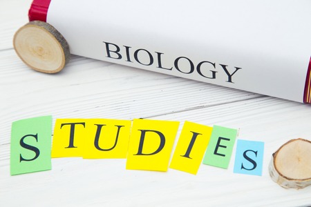 Close up of a book with an open page of a science textbook
