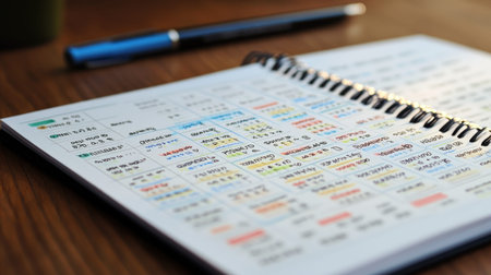 A close-up of a colorful planner featuring various highlighted notes and an organized schedule. Ideal for time management enthusiasts seeking inspiration for efficiency.