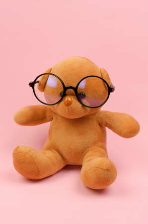 Teddy bear with bandage, child medical care concept. Bear on white background
