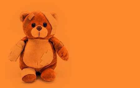 injured teddy bear with orange tone , conceptual image about orange may, month of prevention of child abuse and domestic violence