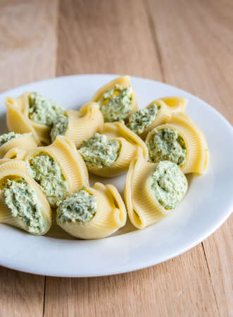 Pasta Conchiglioni, sea-shell shaped dried pasta.