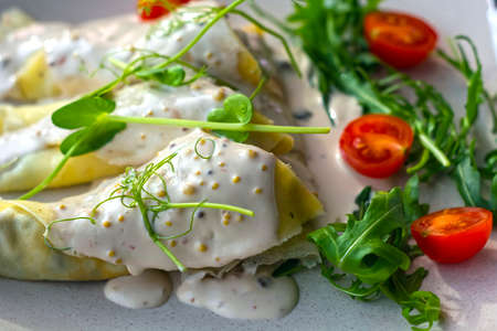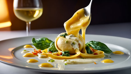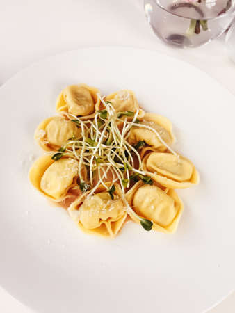 A delicious ravioli is served in a elegance restaurant or hotel.