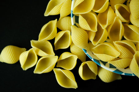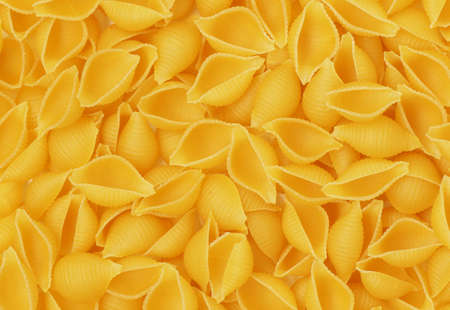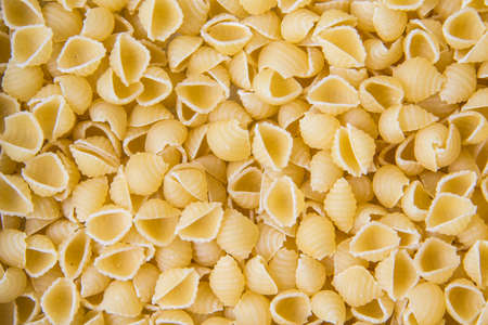 Closeup of uncooked italian pasta - conchiglie. Top views
