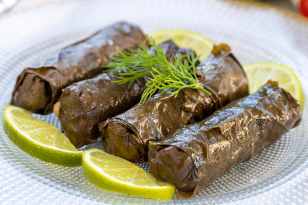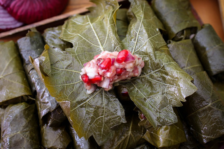 Stuffed grape leaves in Turkish style cooking