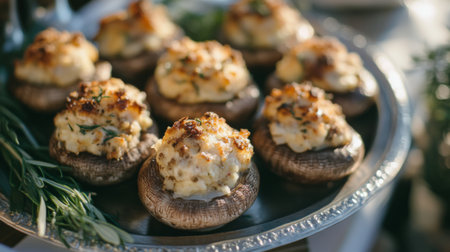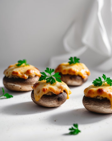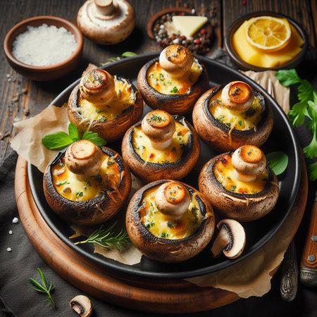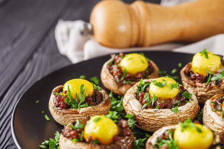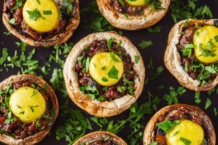 Baked Stuffed Mushrooms with Cheese, Meat Quail Egg Gourmet Delight.