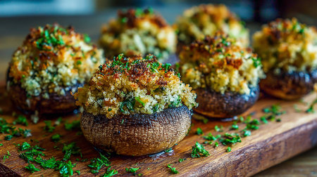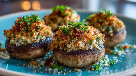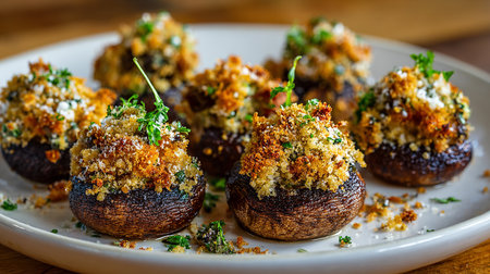 Homemade Stuffed Mushroom Appetizer with Cheese and Breadcrumbs