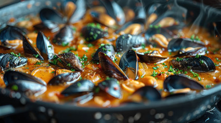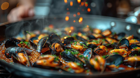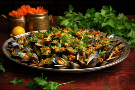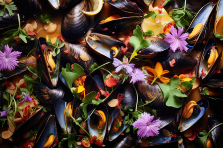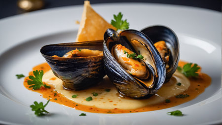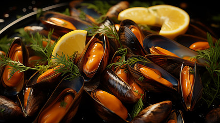 Fragrant Mussels boiled restaurant. Cuisine dish. Generate AI