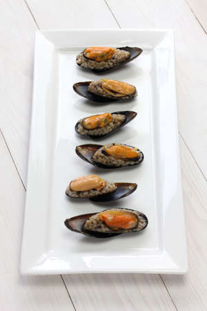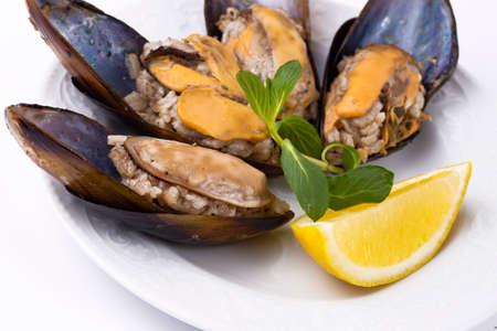 Turkish style stuffed Mussels, Midye Dolma mediterranean cuisine