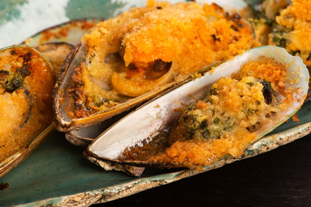 Baked Clams oreganatae - Baked mussels Italian Cuisine