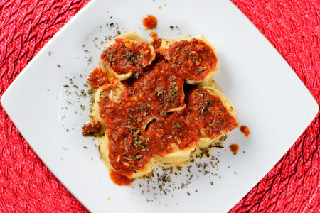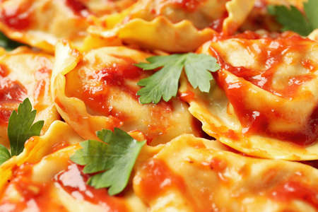 Ravioli with tomato sauce and basil, italian cuisine