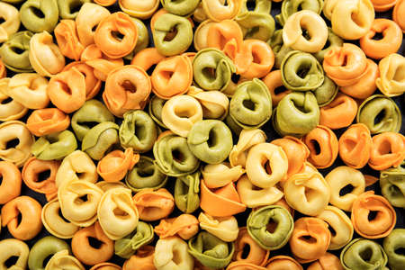 Tri Colored Tortellini Pasta / Multicolor or Colorful. Italian Food.