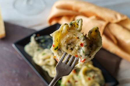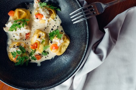 Delicious food concept with ravioli close up