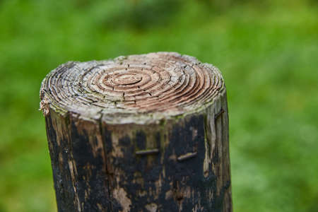 Old wooden pole outdoors in the spring.