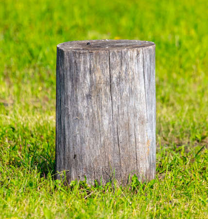tree stump in the park as background. close-up