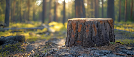 Stump in the forest with sunlight. The concept of environmental conservation.
