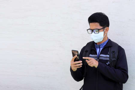 Young indian college boy getting ready for college after the lock down is over. College and School reopen after lock down.