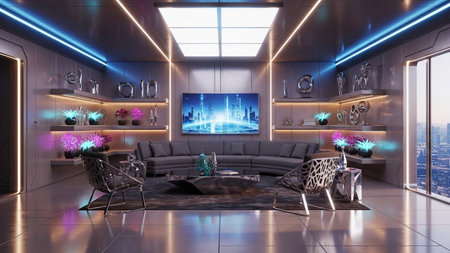 futuristic room with neon lighting and modern design, created with generative ai
