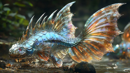 Holographic fish consisting of many particles in the sky. Generative AI.