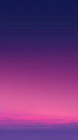 A smooth gradient transitions from deep purple to soft pink in a hazy sky. Clear details and vibr...