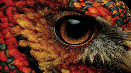 Close up portrait of a vibrant red bird eye, showcasing intricate details and vivid colors, highlighting nature s beauty and wildlife photography