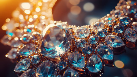 This captivating image showcases a close-up of glimmering diamonds reflecting radiant light, creating an enchanting sparkle. Perfect for luxury themes.