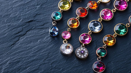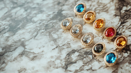 A captivating close-up of colorful sparkling gemstones in a luxurious arrangement, perfect for showcasing elegance and glamour in modern jewelry design.