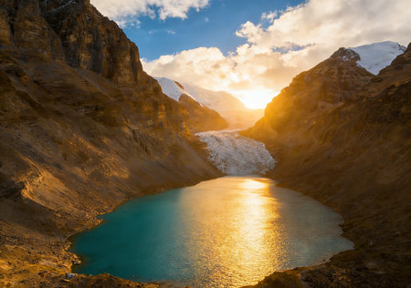 Mountain lake at sunset, Cordillera Blanca, Peru
