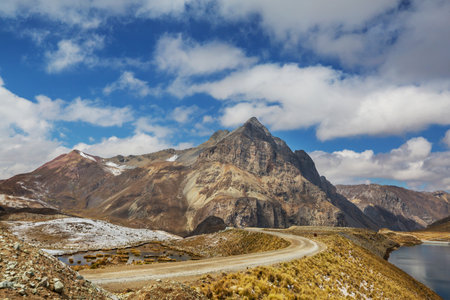 Scenic road in the Cordillera mountains in Peru. Travel background.