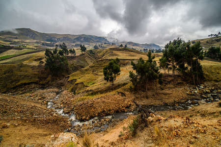 Diverse central landscape with mountains of valleys and canyons in South America of Ecuador