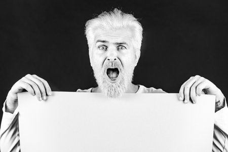 Anger, crisis and portrait of man in studio for psychology, panic and schizophrenia symptoms. Fear, frustrated and mockup space with face of person with bipolar disorder on black background for rage