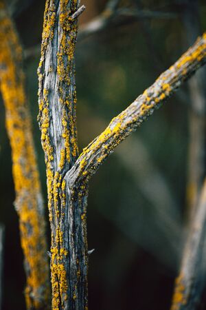 Tree closeup at autumn cloudy day in Altay mountain