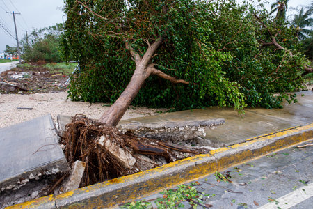 Fallen down tree after hurricane in Florida. Consequences of natural disaster