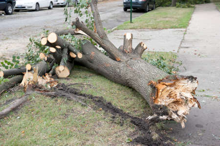 Fallen willow tree after a severe storm in autumn in a residential neighborhood