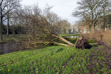 Fallen tree in Vondelpark Amsterdam The Netherlands in a cloudy day in autumn