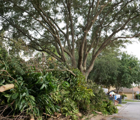 Photo showing a typical problem for many suburban home where massive Oak Tree Trimmings create a waste collection hazard