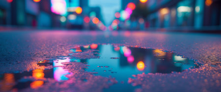 AI Generated. Neon Reflection in Puddle on Urban Street