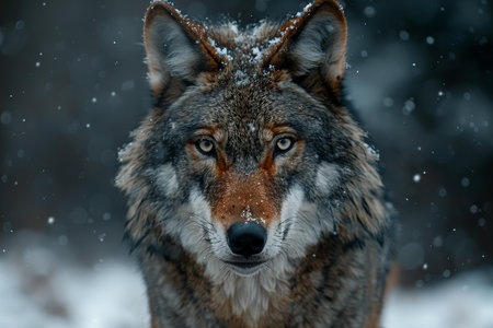 A stunning close-up portrait of a majestic wolf in its natural habitat, showing its powerful and beautiful fur.
