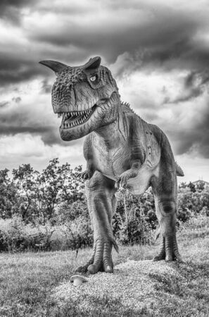 SAN MARCO IN LAMIS, ITALY - JUNE 9: Carnotaurus dinosaur, featured in the Dino Park in San Marco in Lamis, small town in southern Italy, June 9, 2018