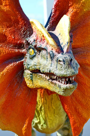 A close-up of the spinosaurus head, he was a fairly large animal. Horns are located on the head near the eyes. There is a place to copy. High quality photo
