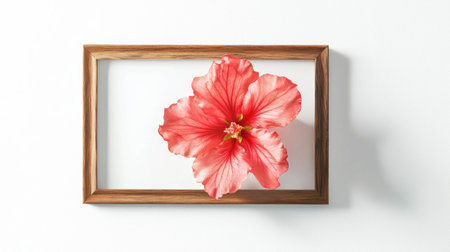 Realistic pressed wildflower in wooden frame for botanical art decor