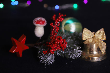 winter holidays objects on dark background. christmas festive toys assortment