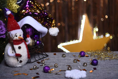 New Year's Holidays. Festive mood. Christmas and New Year. Decoration for the Christmas tree. Toys and gifts. Christmas tree. holiday and fun. winter vacation. winter holidays. christmas background. New Year characters. Snowman, santa claus. Father Frost.