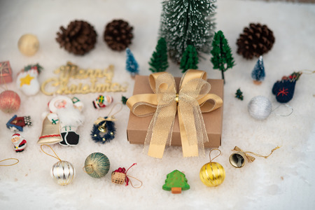 celebration happy new year and merry christmas season greeting holiday festival with toy prop decoration gift on vintage background