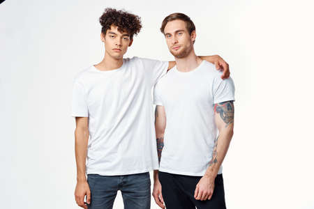 two men friendship hug emotions communication studio