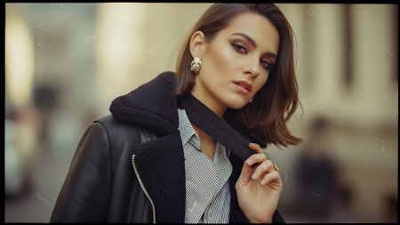 AI Generated. Stylish Models Posing Confidently at Night in Trendy Outerwear Fashion