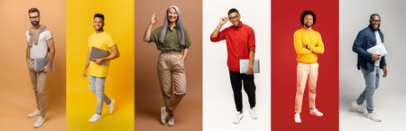 A dynamic collection of full-body portraits features young adults in casual and semi-formal attire against backgrounds. The concept captures the essence of modern urban life
