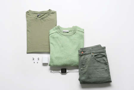 Men's clothing and accessories on a white background. Fashionable men's clothing.
