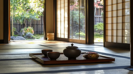 Japanese tea ceremony in the Japanese style with teapot and cup