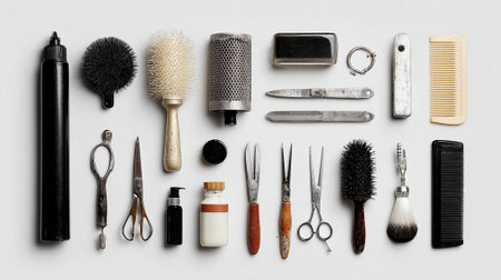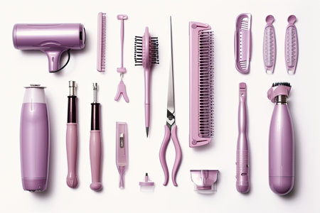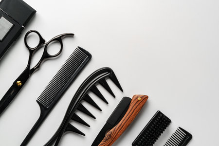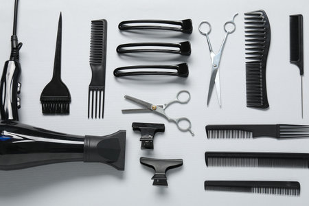 Professional tools for haircut on light background, ai generated
